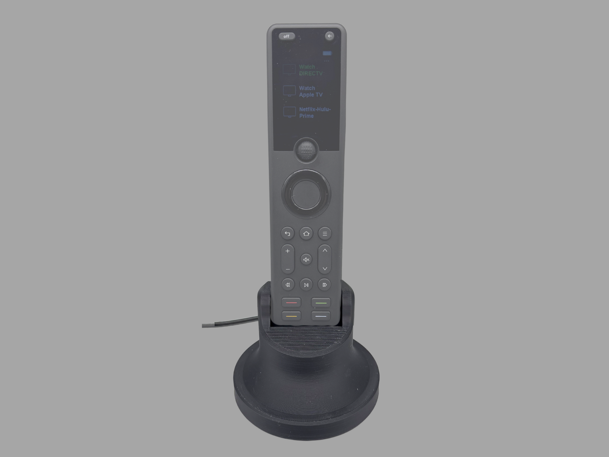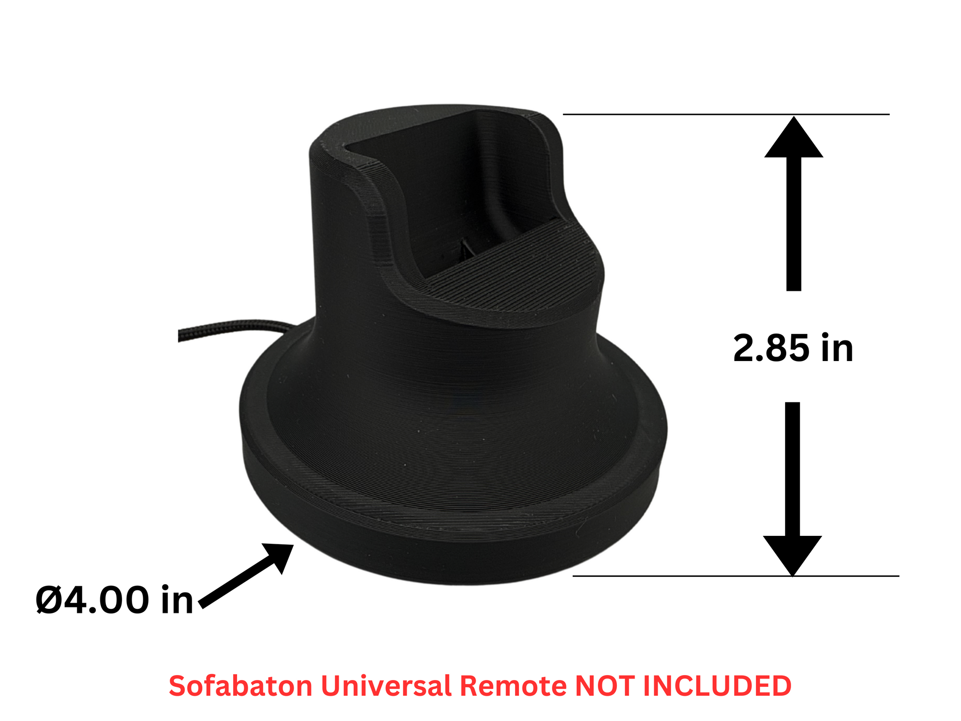 Proudly display and charge your Sofabaton X1 or X1s universal remote control in our high quality cradle. Charger utilizes a magnetic attaching USB-C end connection for the Sofabaton remote control. Simply install the supplied USB-C fitting into the end of your remote (it will stay in the remote). Once installed just place the remote into the holder and it will begin charging. The base is prewired with a 6ft USB cable to plug into your outlet (USB Outlet block not included). For easy one-handed removal simple rotate the remote forward to disengage the magnet before removal.