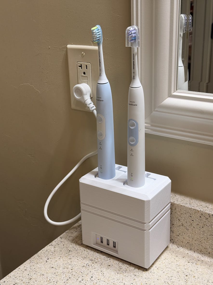 Electric Toothbrush Holder, Oral-B, Sonicare, 2x, Countertop, Wall Mount, USB Power Center